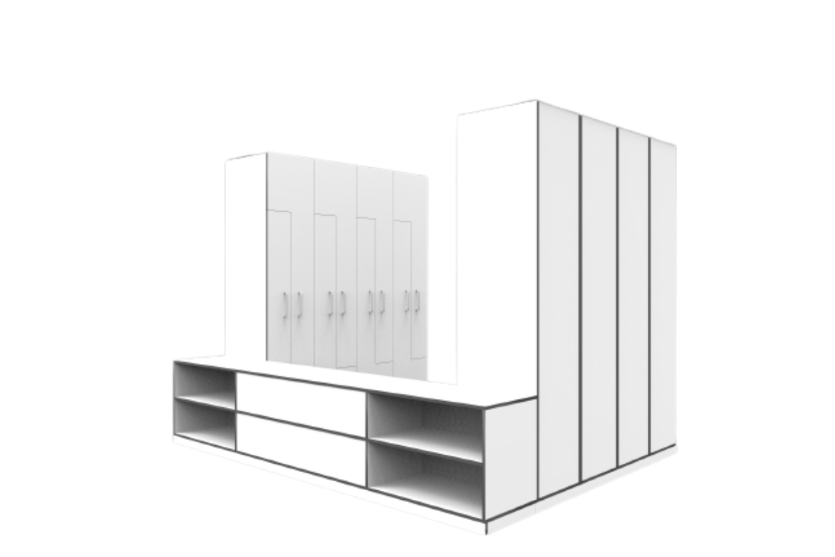 Kompakte Schränke und Bank