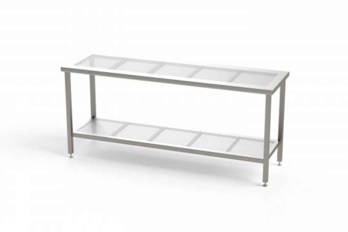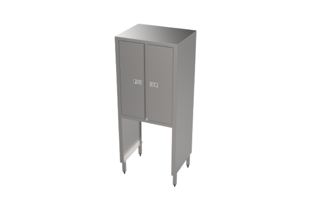 Edelstahlschränke und Bank