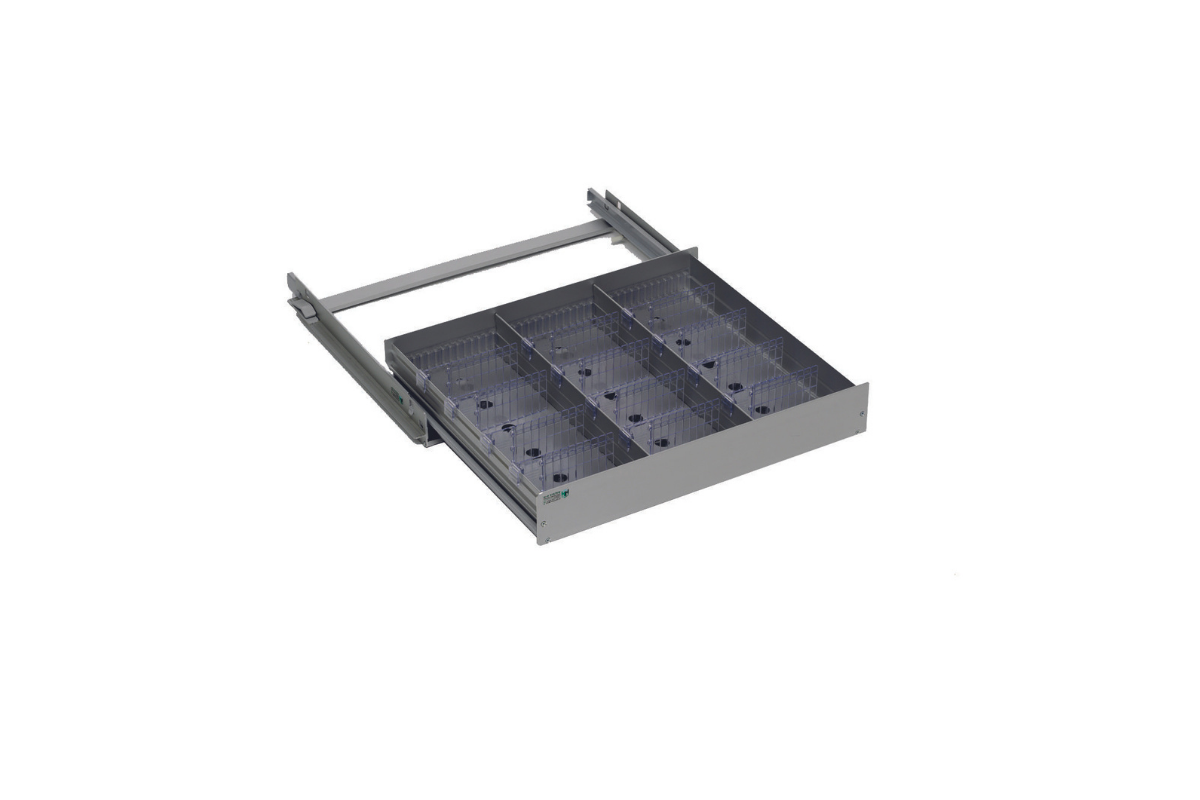 Aluminium ist leicht, ästhetisch und langlebig. Seine hohe Leitfähigkeit sorgt für eine optimale Temperaturverteilung im Kühlschrank. Auch jeder Medikamentenkühlschrank kann mit der AluCool®-Schublade nachgerüstet werden – wertvoller Platz wird optimal genutzt. Zusammen mit dem H+H-Trennsystem erhalten Sie eine funktionale Gesamtlösung, die für perfekte Organisation, Übersicht und Flexibilität im Kühlbereich sorgt. Je nach individuellem Bedarf ermöglicht das Unterteilungssystem die Lagerung von Medikamenten, Blut und Plasma mit einem Platzgewinn von bis zu 30 %.